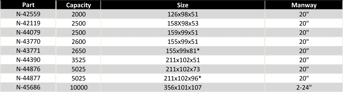 Norwesco holding tanks are the largest capacity below ground storage tanks made today. Typically used to store water – both potable and non-potable – they can also be used as large capacity septic tanks. The tank design will accept up to 4″ plumbing options. Integral columns in the tank give it excellent structural strength.