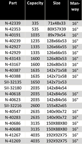 Large capacity horizontal tanks that are designed for storage and non-DOT regulated transport applications. UV stabilized for outdoor use.