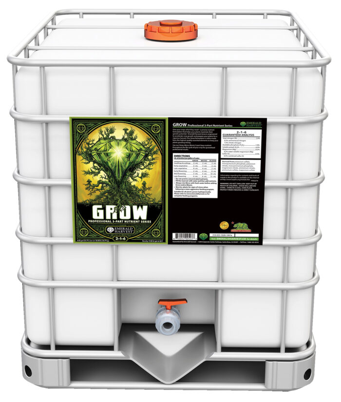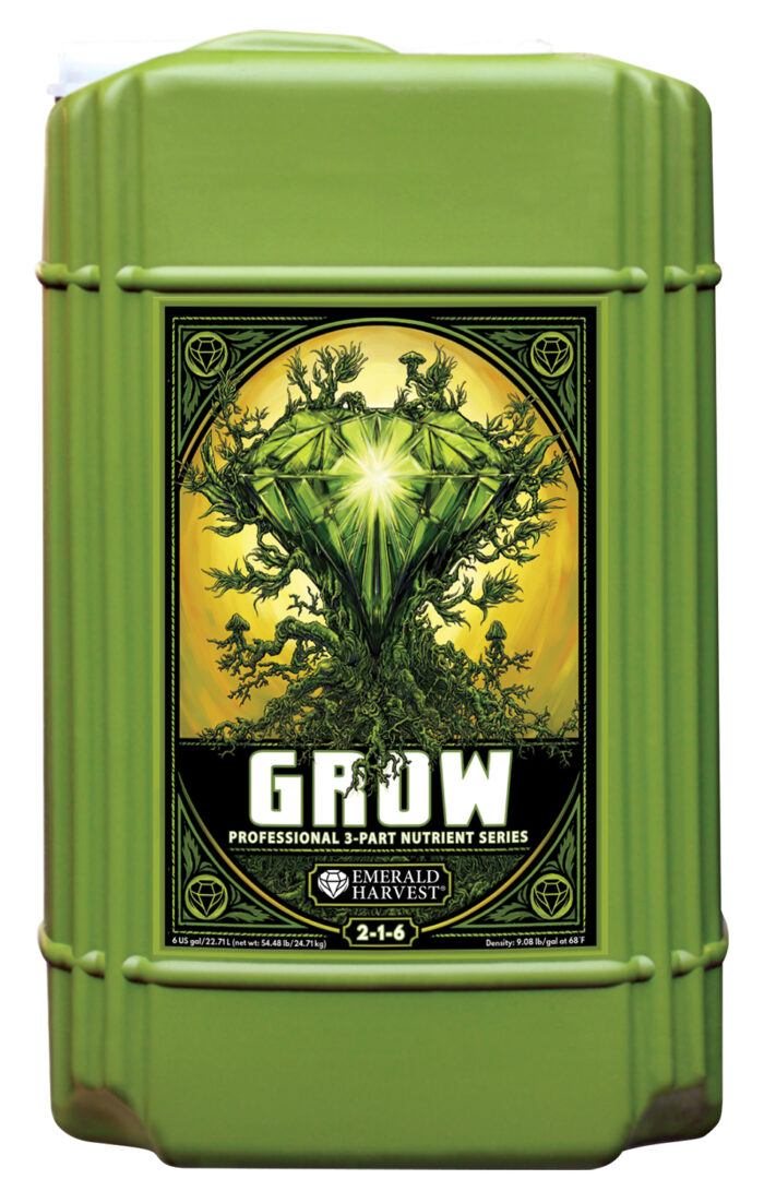 Give your crops what they need when they need it most with Emerald Harvest® Grow, Micro, Bloom 3-part base nutrient series. Grow, Micro, Bloom supplies plants with precise nutrient formulations that deliver the right amounts of nitrogen, phosphorus and potassium throughout the crop life cycle. In addition to regulating the amounts of N, P and K so that your high-yield plants flourish, Grow, Micro, Bloom provides a rich mix of trace elements such as magnesium, cobalt and molybdenum as well as many chelated micronutrients such as copper, manganese, zinc and iron.