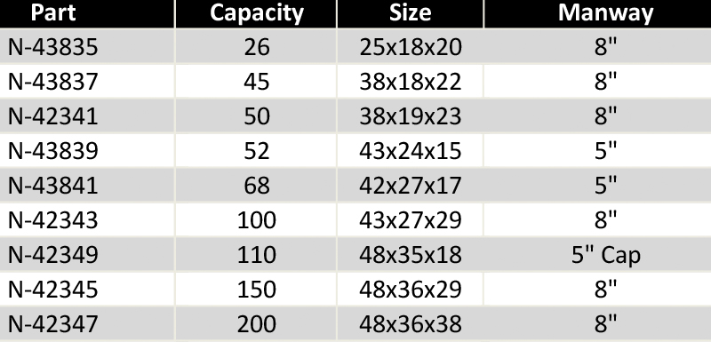 Like the PCO tank, the Flat Bottom Utility tank can be used for many applications. It is the perfect choice when looking for a tank to put in the bed of a pickup truck. Select sizes have bands available as shown below. The tank may be used with or without bands.
