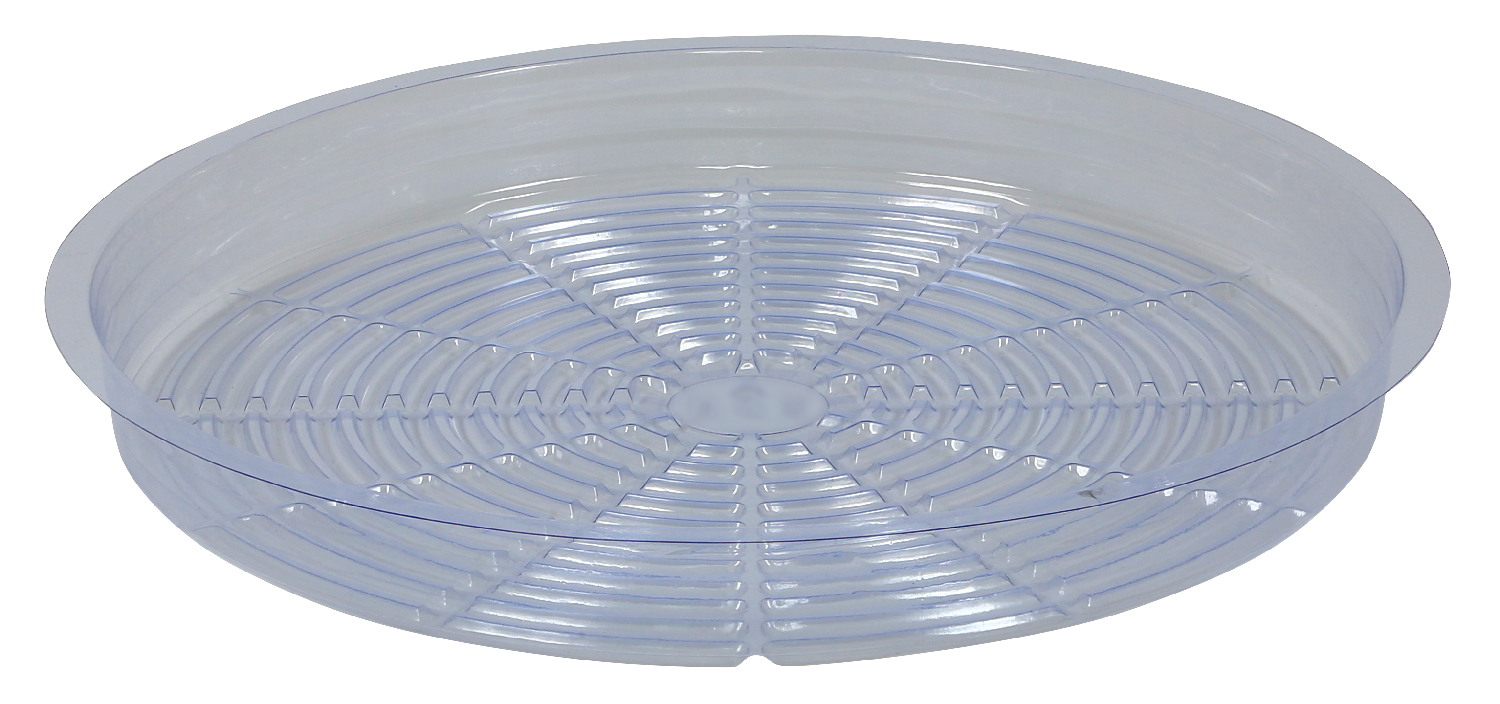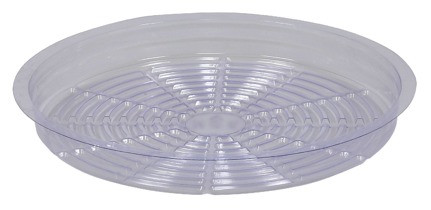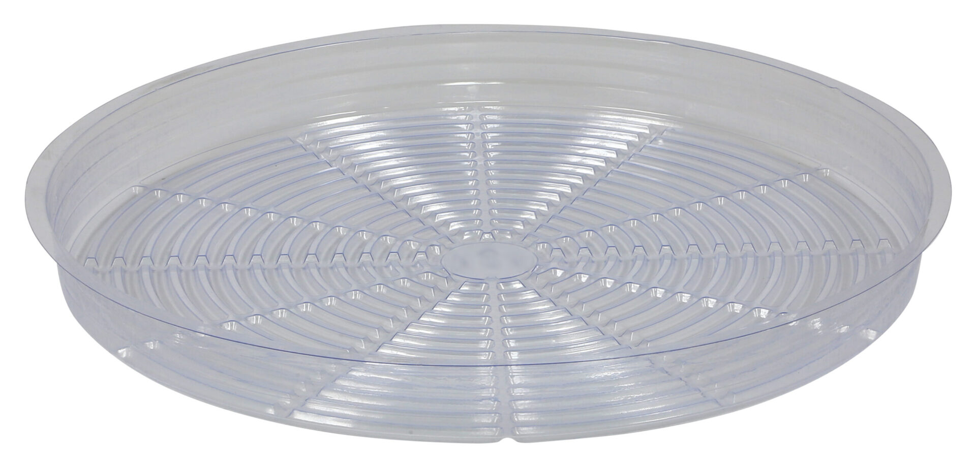 Gro Pro® Premium Clear Plastic Saucers protect flooring, counters or furniture from the water runoff or soil debris that can drain from plant containers after watering. Drainage channels on the bottom of the plastic plant saucers keep the pot above the drainage to prevent plant roots from sitting in water.