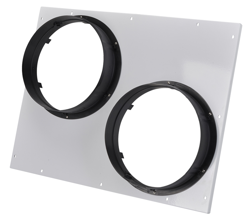 The Exhaust Duct Kit allows duct work to be attached to the intake on the Quest 506 Dehumidifier. This allows the dehumidifier to be located outside of the indoor garden. This two-piece kit comes with a duct adapter, collar plate and screws to install it. The collar plate has 12 in round collars. It is 27.57 in x 21.5 in x 4 in.