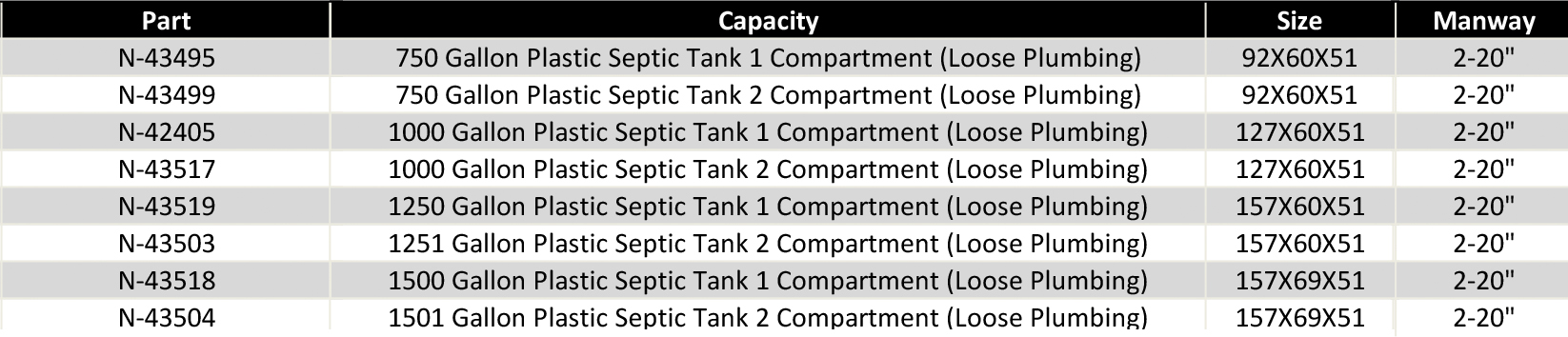 Low Profile septic tanks are molded in one piece, requiring no additional assembly, reducing installation time and effort.